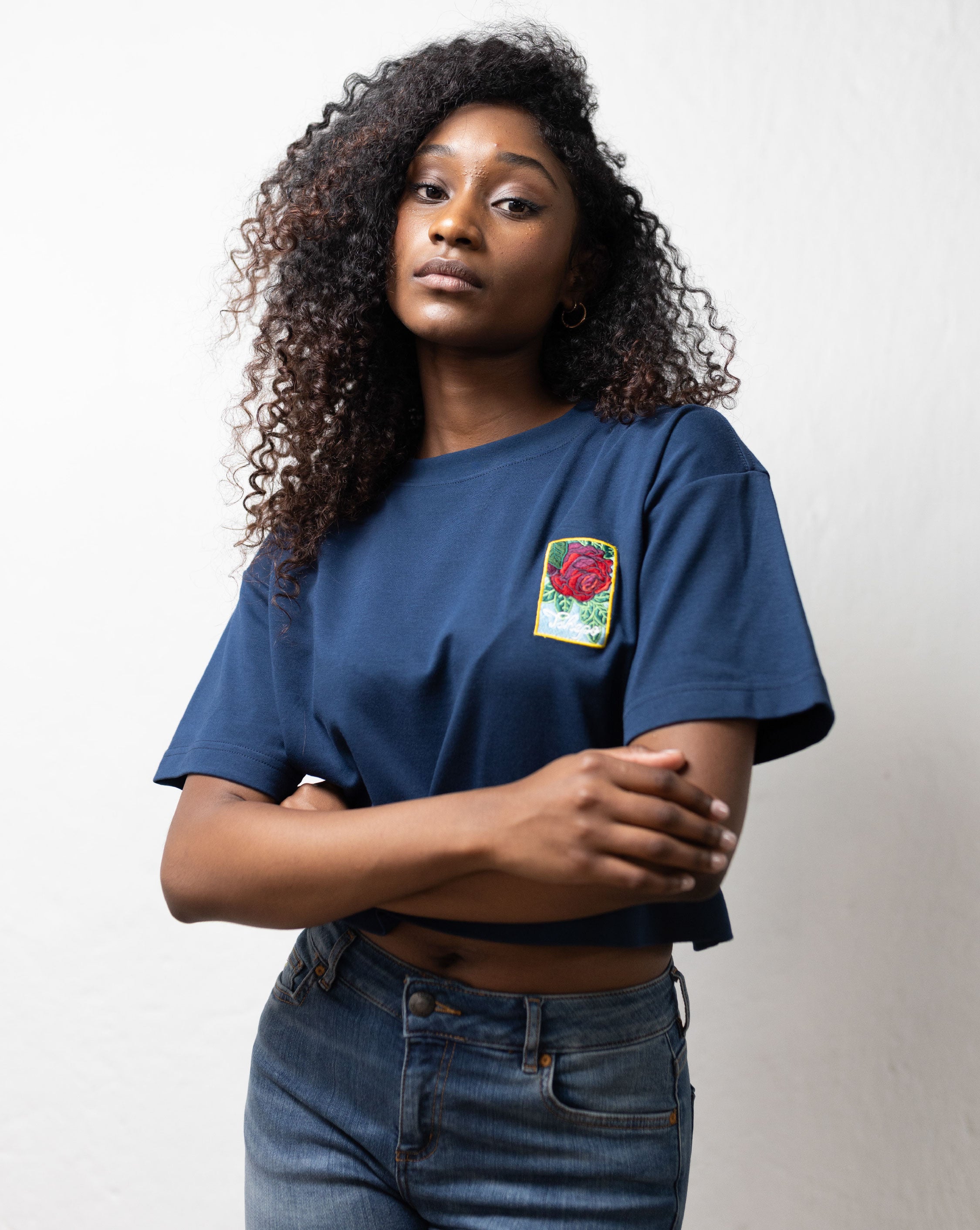 TSHEPO, BLOOM LADIES CROPPED T-SHIRT, NAVY