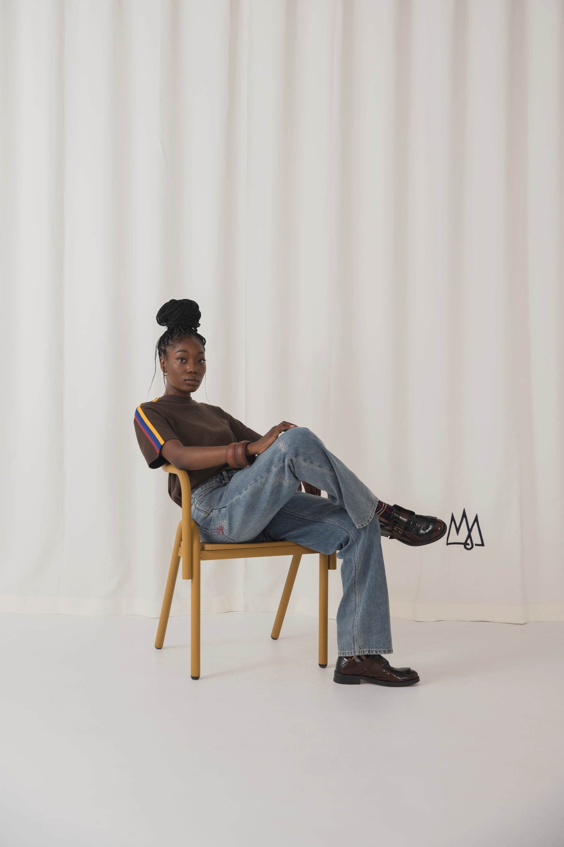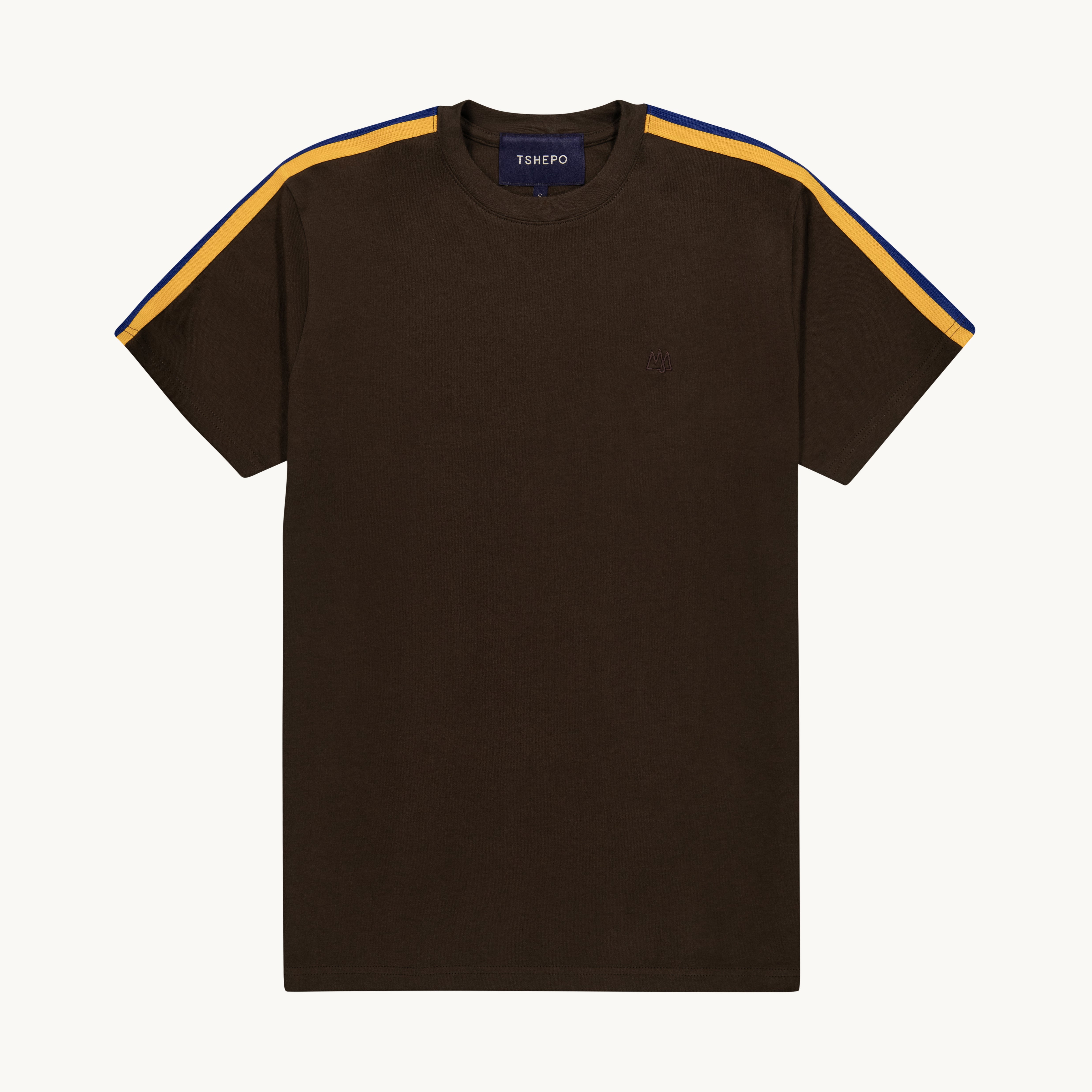 A simple tee, elevated at the shoulders. The TSHEPO Shoulder Web carries the Flag house code as the leading story, worked in as woven tape. Clean from a distance, considered up close. Also available in Jet Black and Ivory.