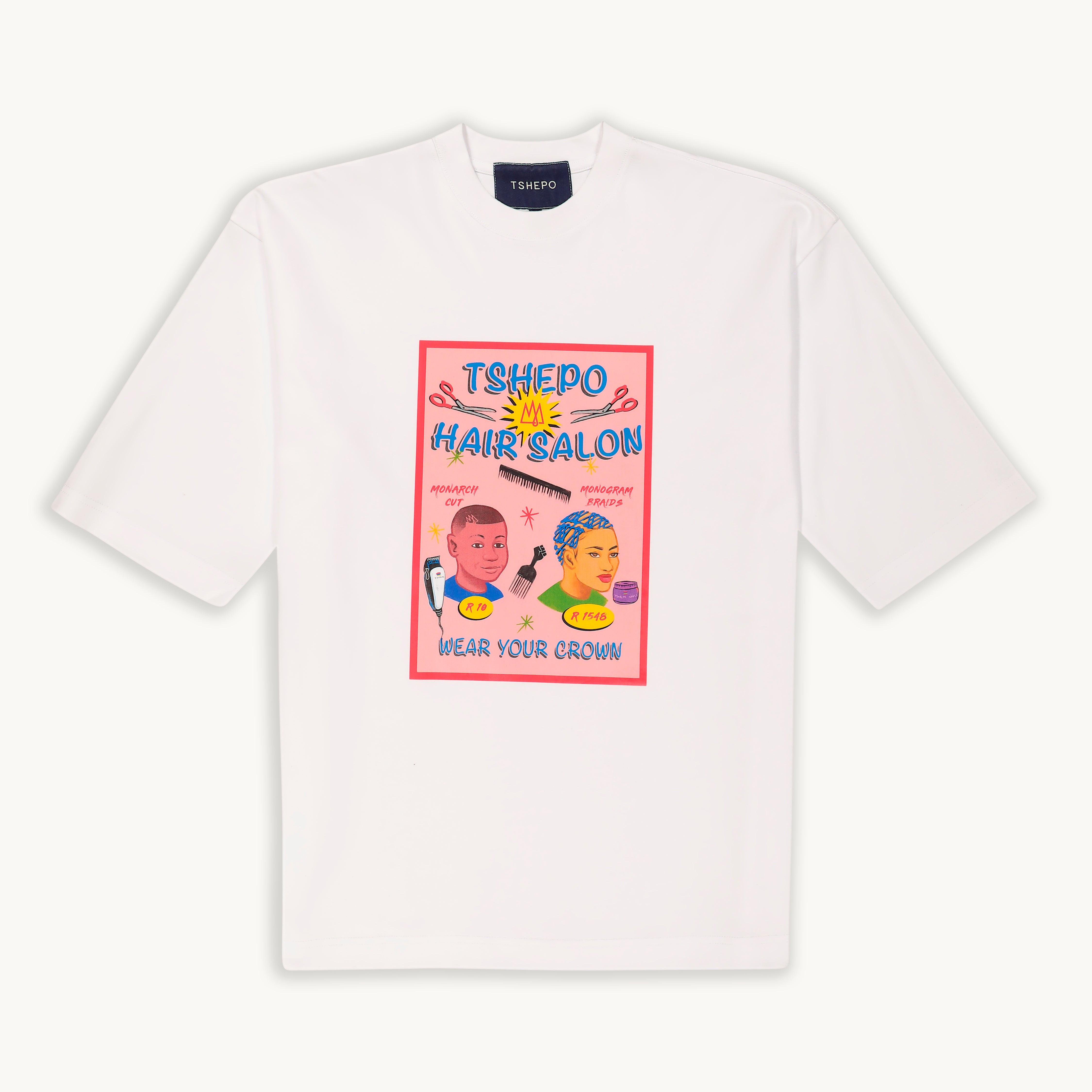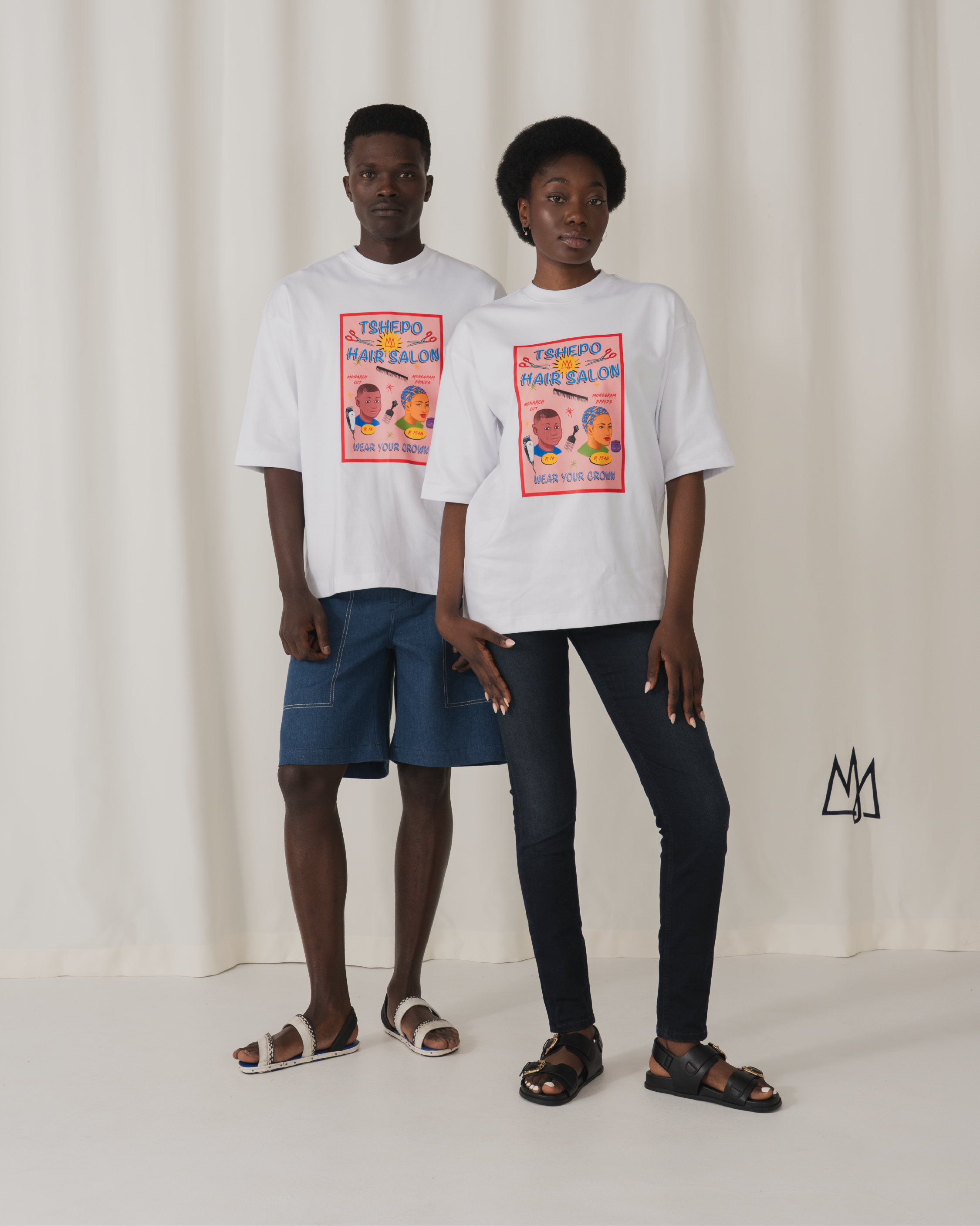 This black tee draws from the bold boards of South African barbershops, celebrating hair, pride, and identity. The design stands loud on the front, with a subtle nod to hair-itage on the back.