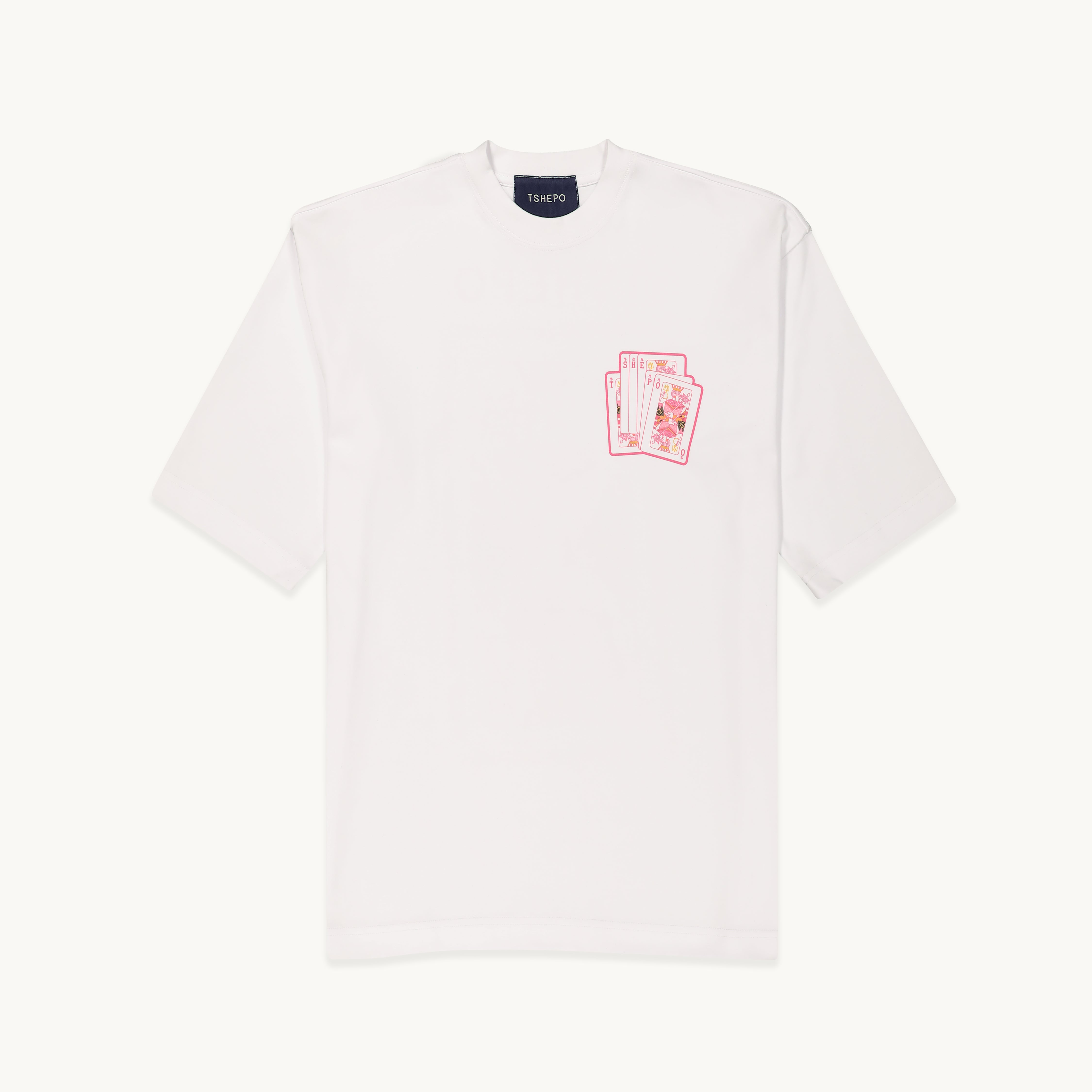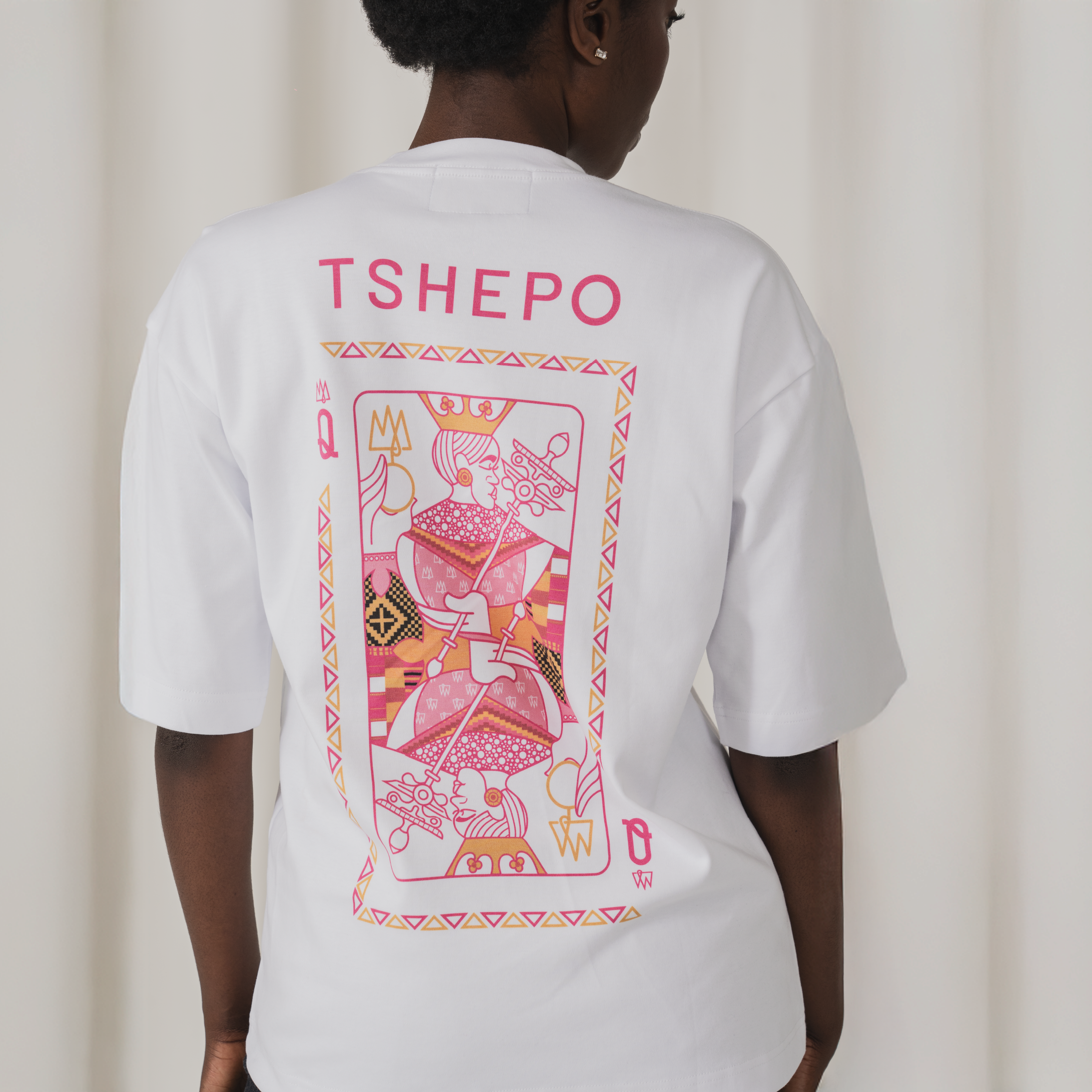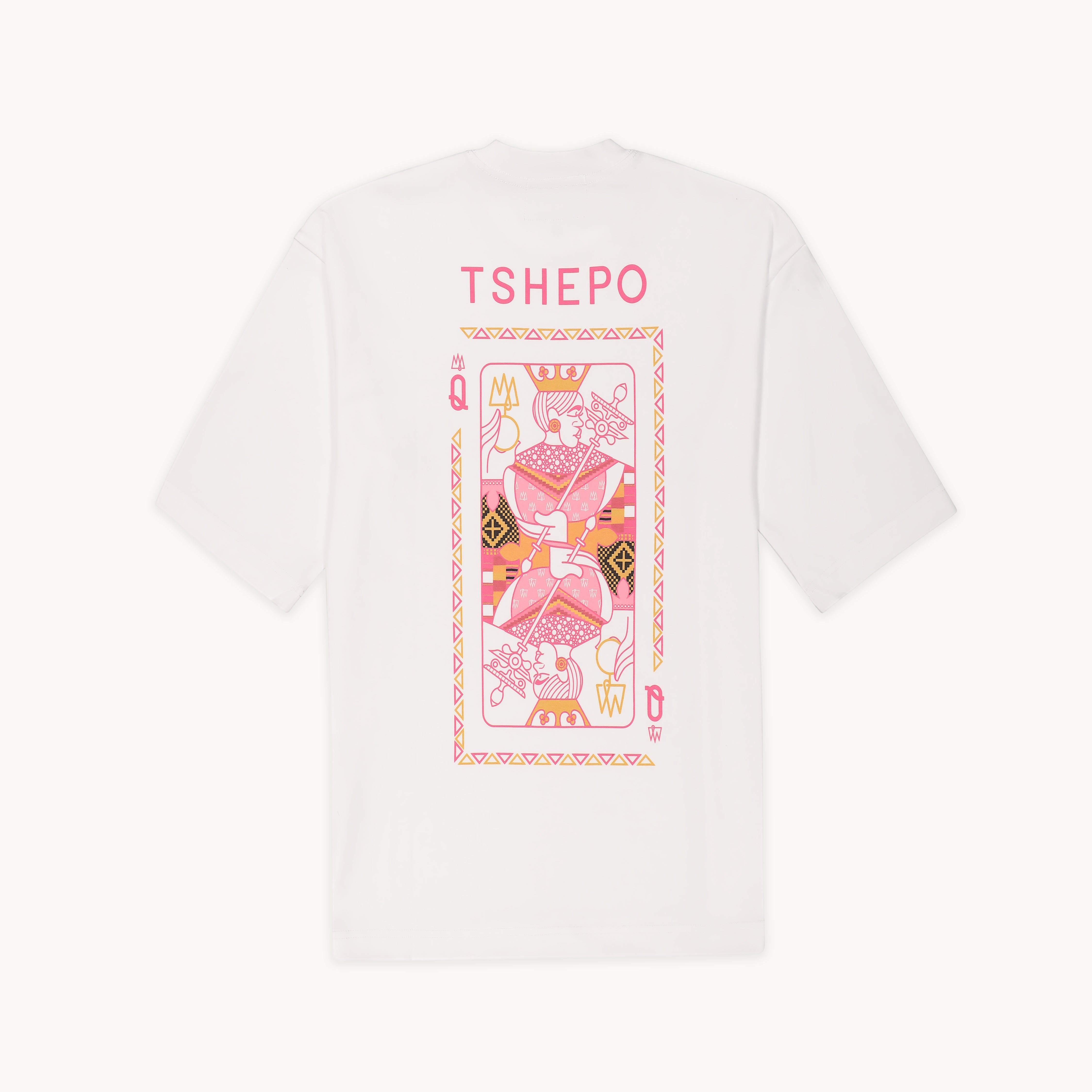 This tee plays its hand with a design worthy of a queen. Inspired by Queen Makeba (the first Black queen to be named in the Bible) the card design celebrates her legacy of beauty, wisdom, and power. A chest card motif sits upfront, with the full artwork on the back in striking pink.