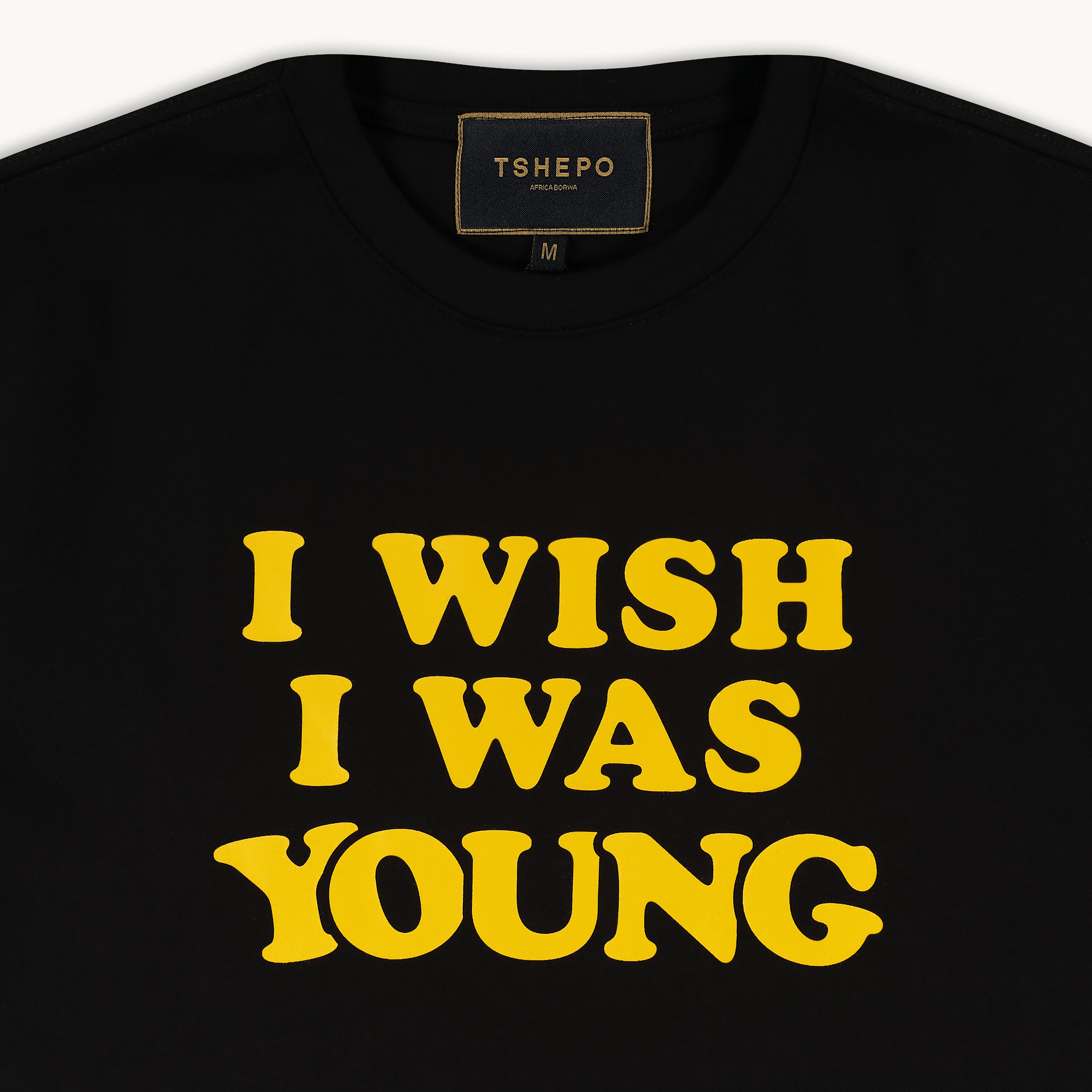 On Sundays, Magriza would stand before her congregation and say with a smile: “I wish I was young.” She wasn’t longing for the past — she was reminding us of the power in youth. This black tee carries that same message: a simple line, stitched in cotton, celebrating energy, perspective, and possibility.