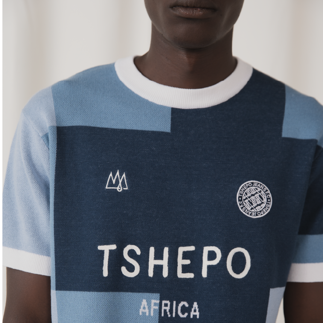 Woven from cotton and finished with a considered knit, it balances sport and everyday wear. Created to celebrate a decade of TSHEPO, the shades of blue nod to the spectrum of denim that defines the brand. A reminder that denim is always woven into our story, even when we step beyond it.