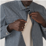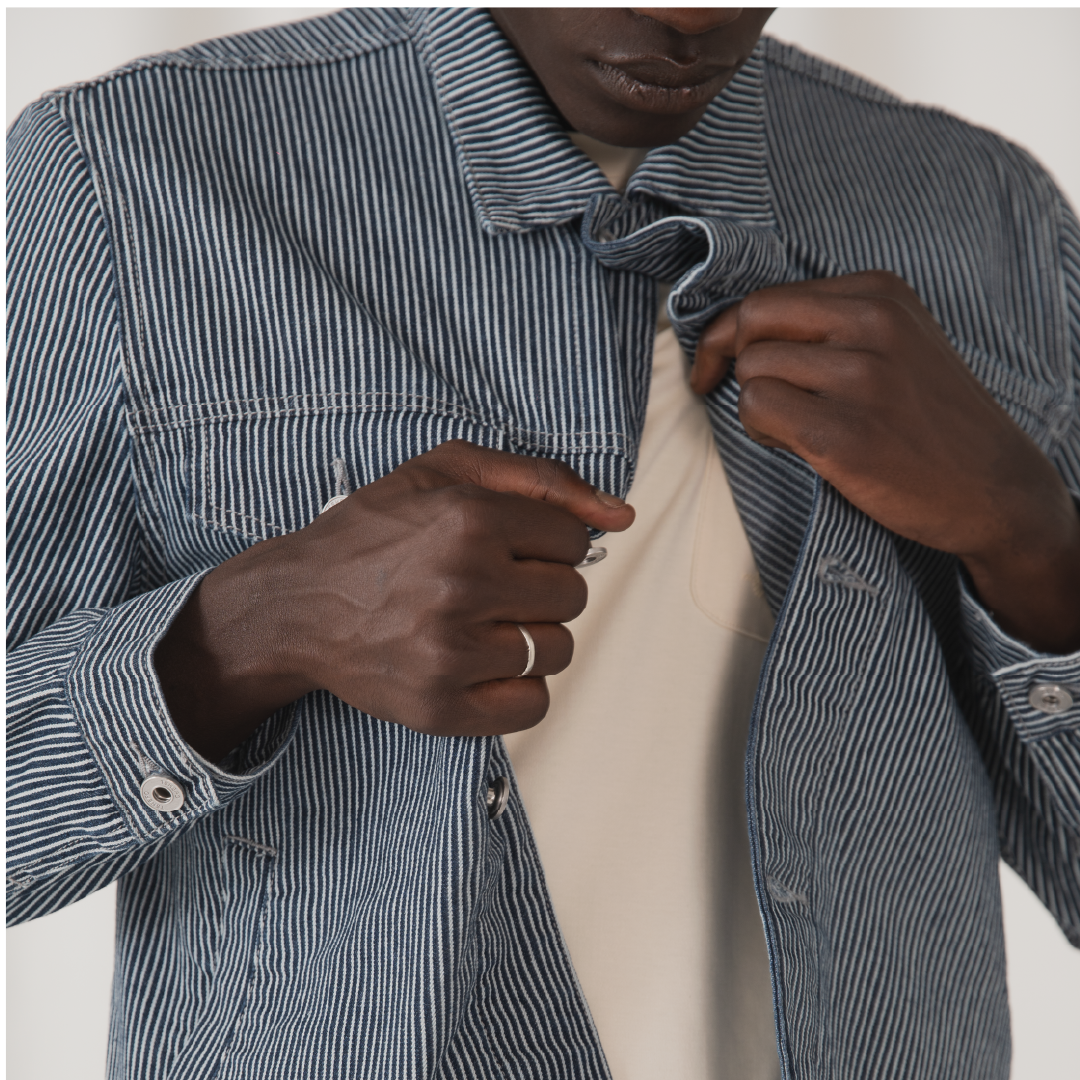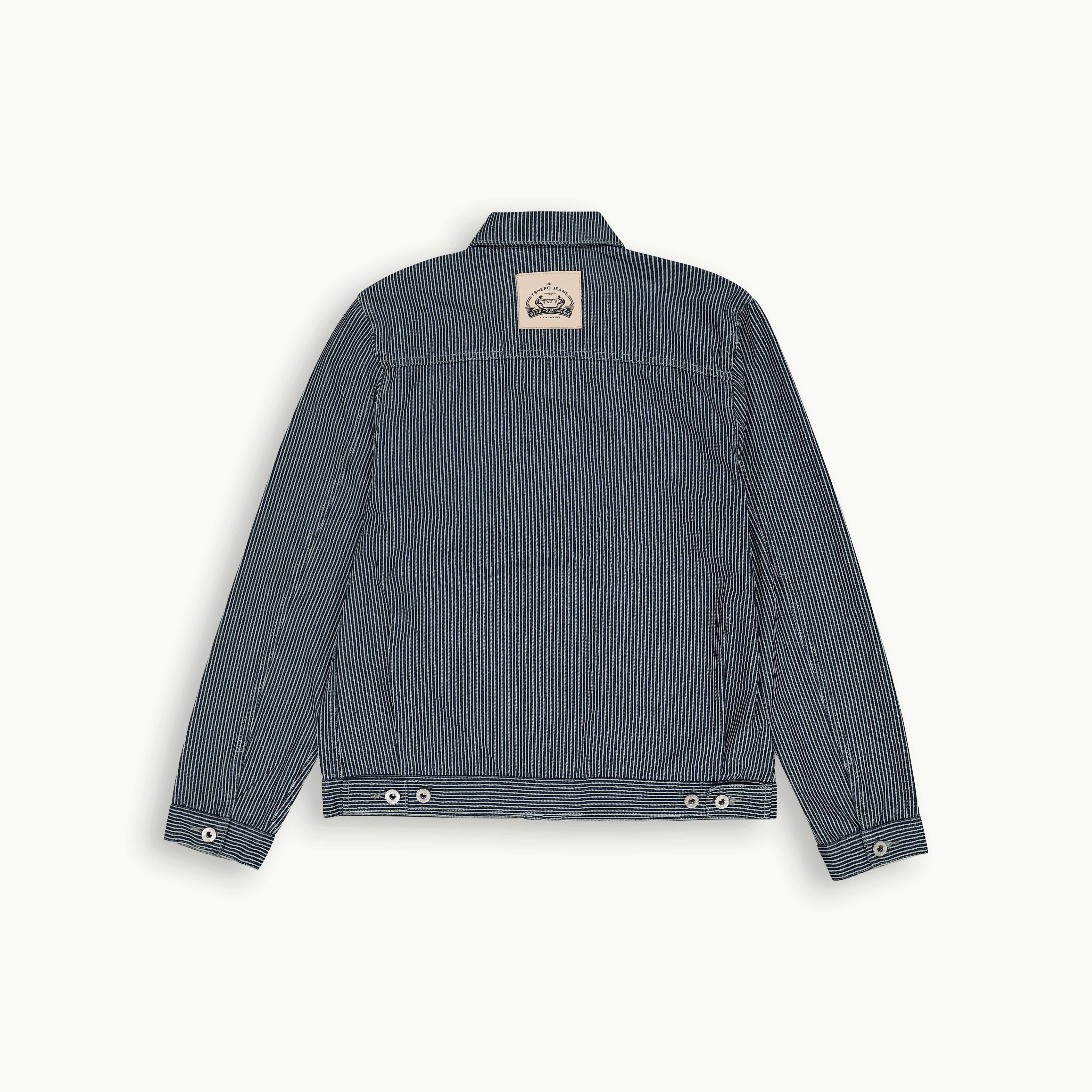 A classic trucker jacket reworked in striped hickory denim. A workwear staple rooted in the Industrial Revolution, when clothing was built for long days and honest labour.