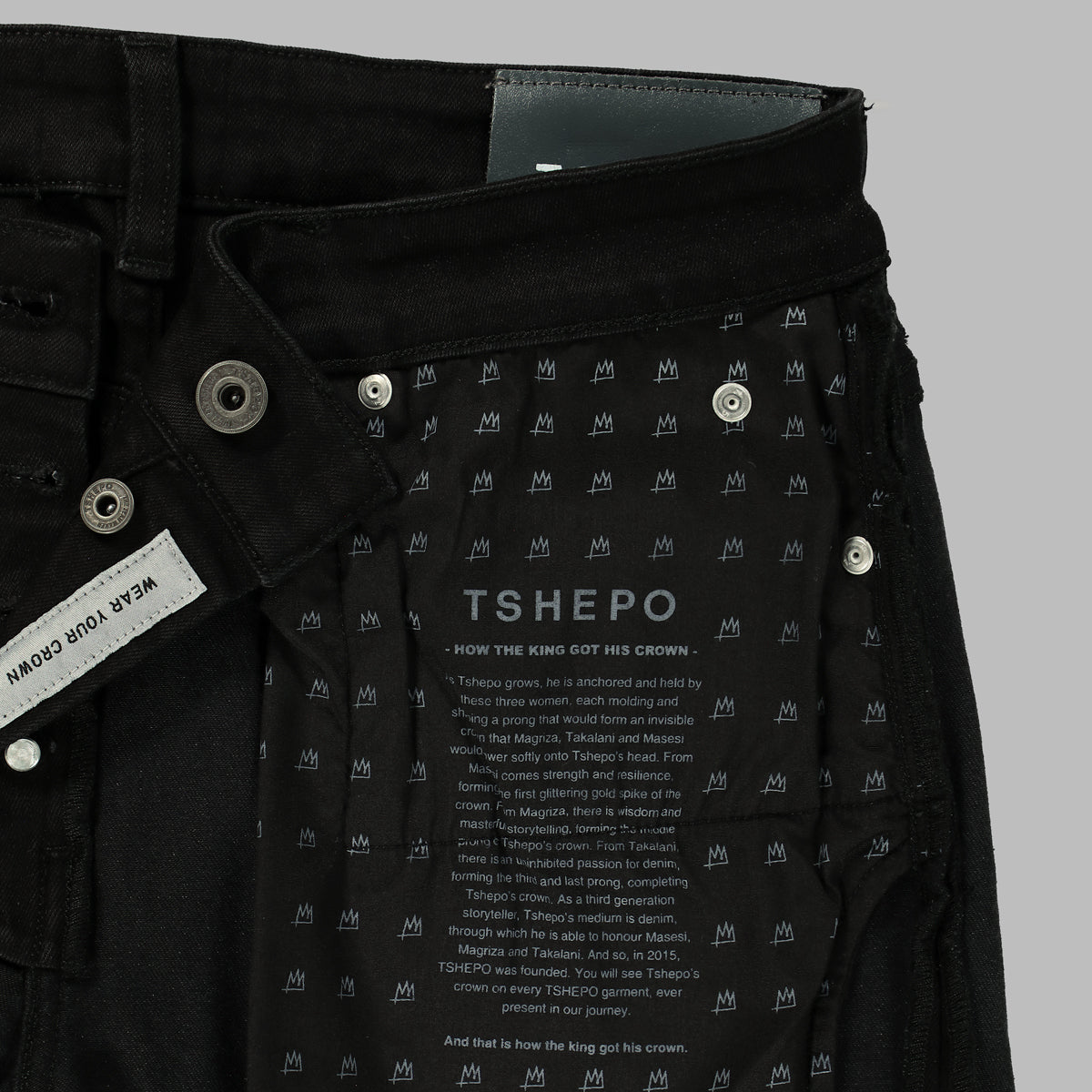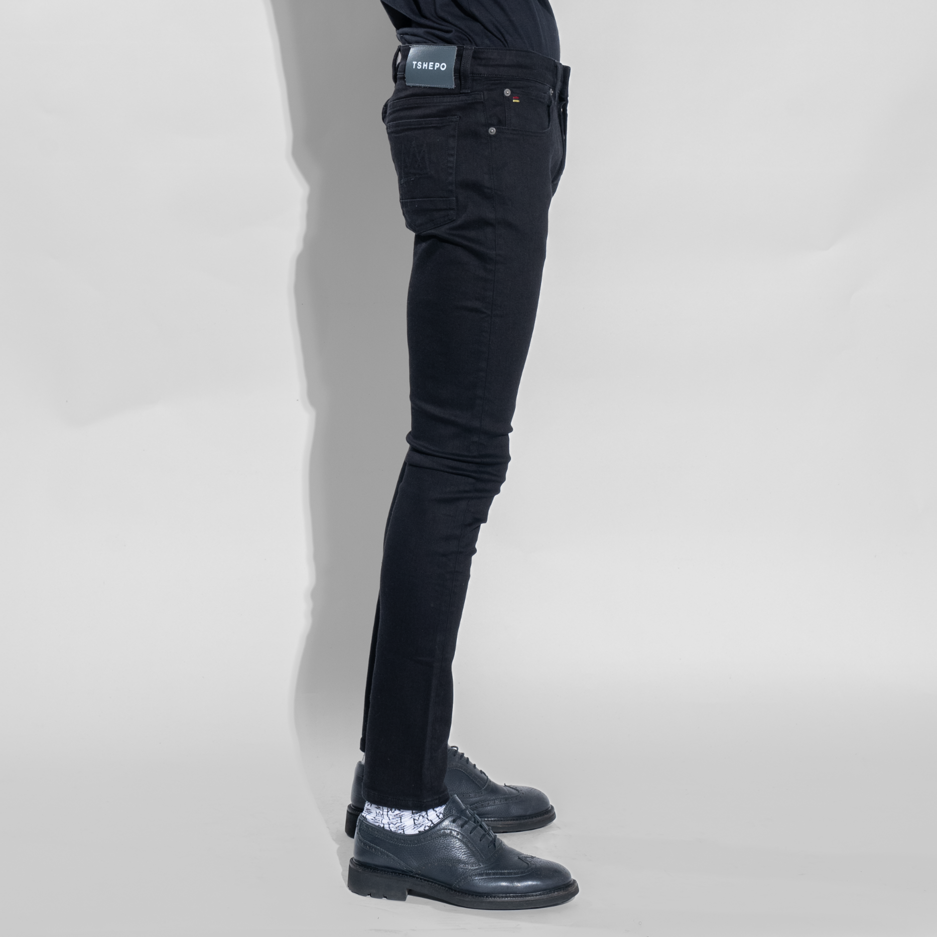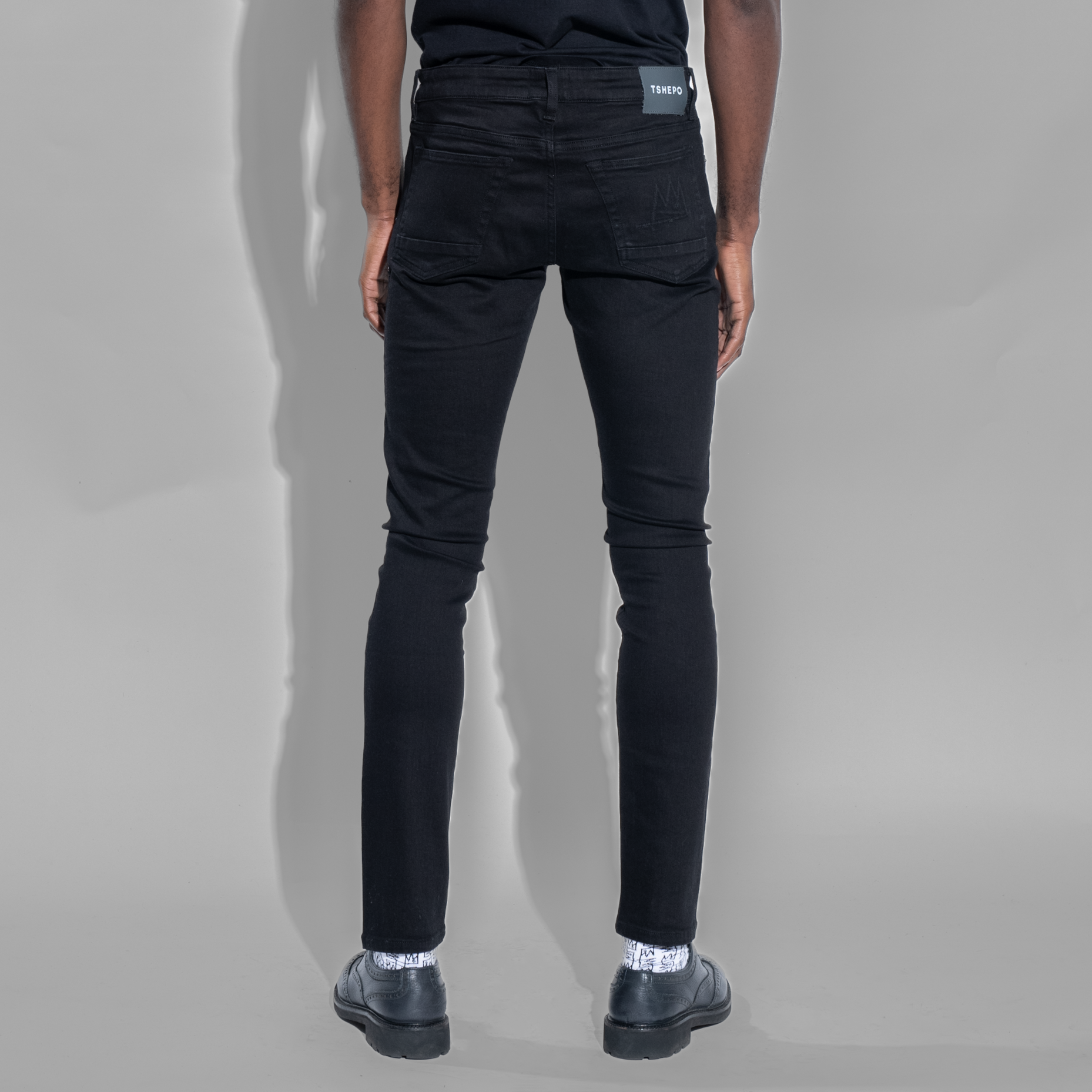 The Rato jeans are our signature presidential fit denim in a startling black colour. Slim-ft and mid-rise with grey stitching, you don't have to be afraid of the dark when TSHEPO is around.